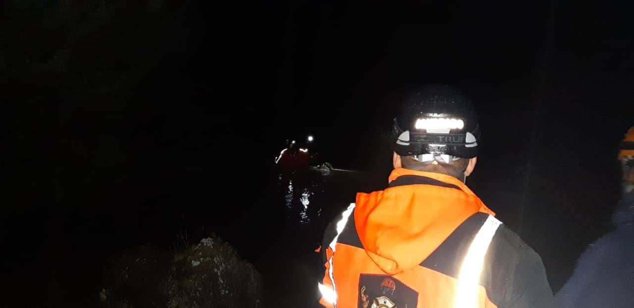 Durante el día, personal de hombres rana y demás socorristas de Bomberos Voluntarios continuaron con las acciones de localización.
