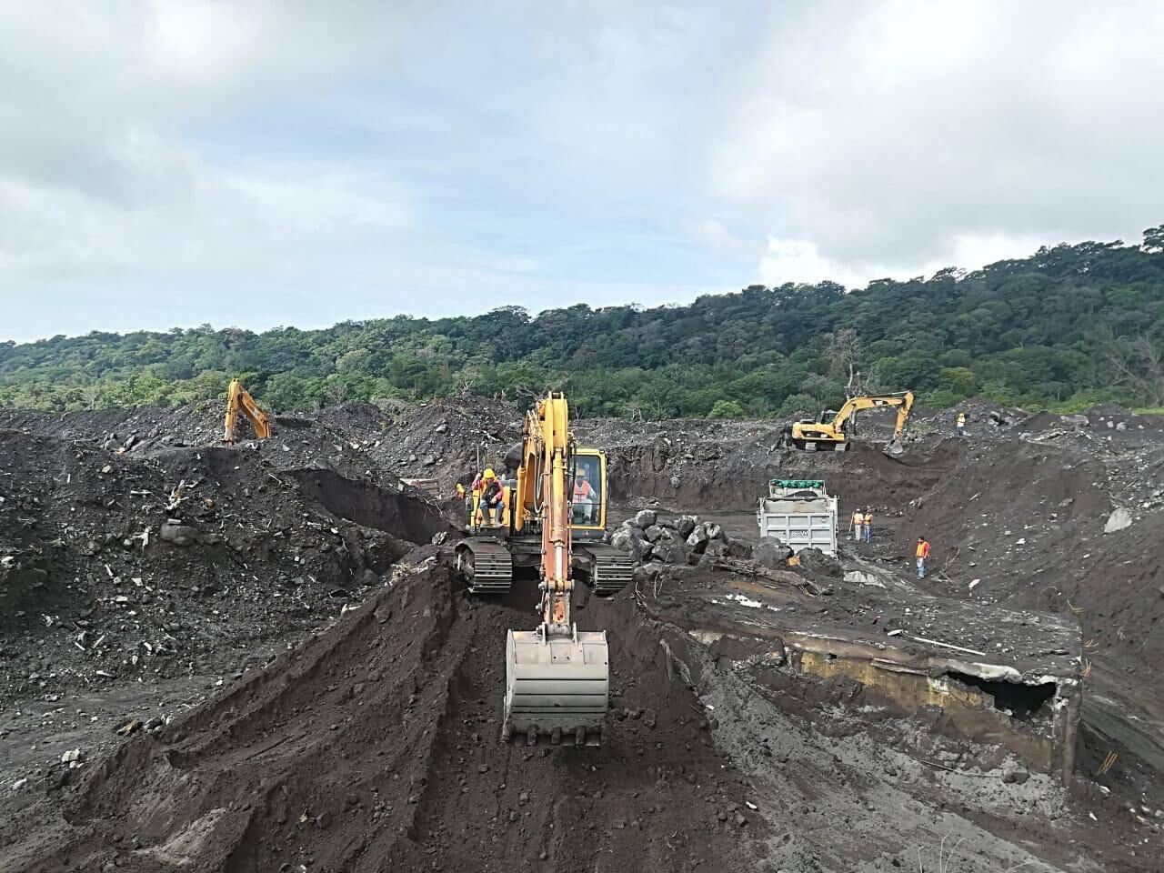 Las excavaciones para encontrar restos humanos de los 229 desaparecidos se reactivaron en la comunidad de San Miguel Los Lotes, arrasada por una avalancha de gases, ceniza y rocas ardientes que descendió del volcán.