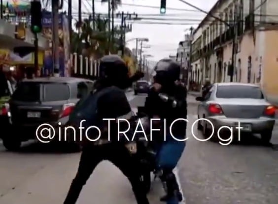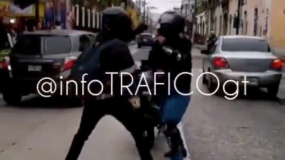 Los protagonistas de la pelea decidieron dejar a un lado sus motocicletas para iniciar una pelea a media calle. En el video se observa que se encontraban en la 12 avenida, entre 9a. y 10a. calle, de la zona 1.