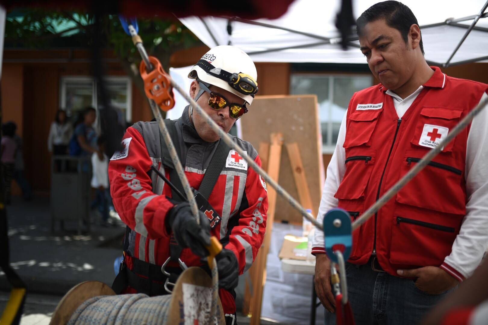 Asimismo, hubo demostración de equipo vertical de rescate, y primeros auxilios. También inscribieron a voluntarios para unirse a la Cruz Roja Guatemalteca.