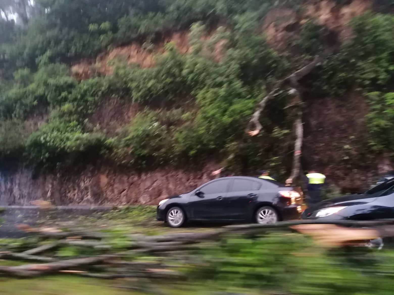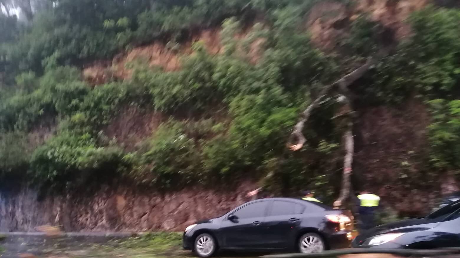 El árbol se desprendió desde un área montañosa y quedó obstaculizando dos carriles con sentido a la Ciudad de Guatemala.