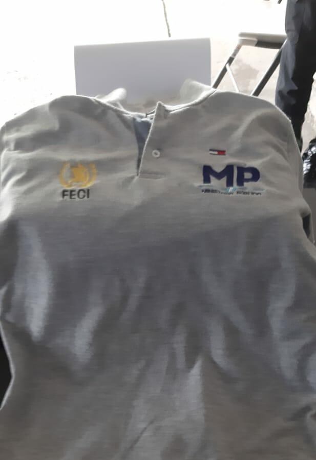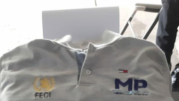 Algo que llamó la atención de las autoridades fue que el aprehendido vestía una camisa polo gris. Tiene los logotipos del MP y las siglas "Feci".
