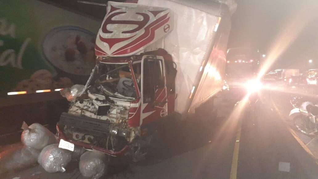 Una fuerte colisión que involucró a un camión se registró este viernes en el kilómetro 13 de la ruta al Pacífico, en la bajada de Villalobos.