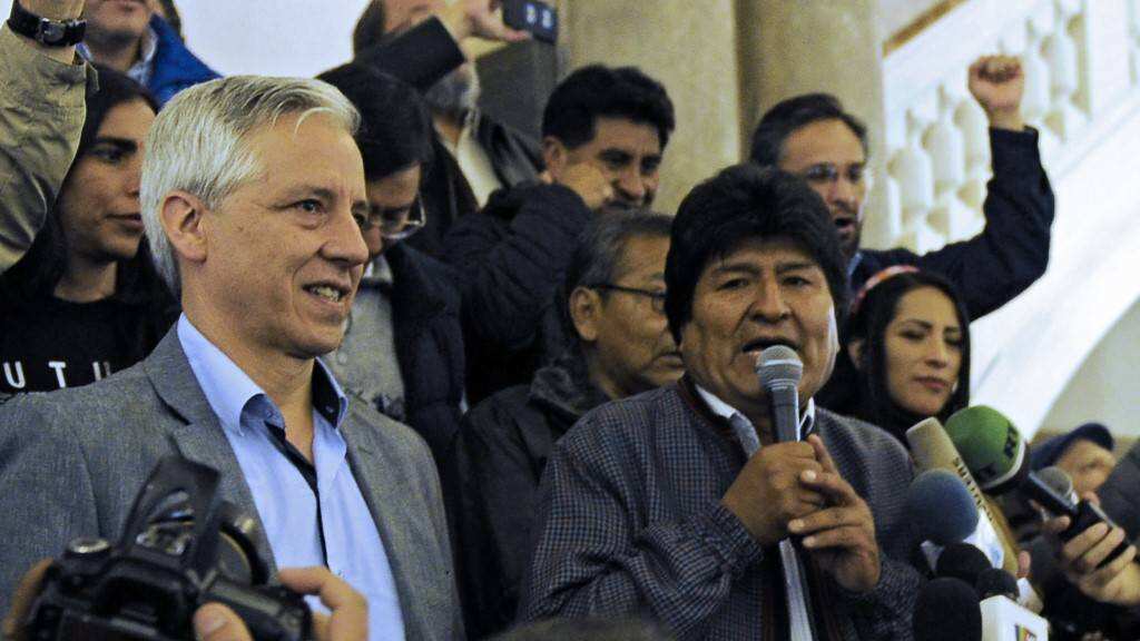 El presidente Evo Morales celebró su victoria en las elecciones del domingo en Bolivia, en las que obtuvo el 45,28% de los votos contra 38,16% del exgobernante opositor Carlos Mesa.