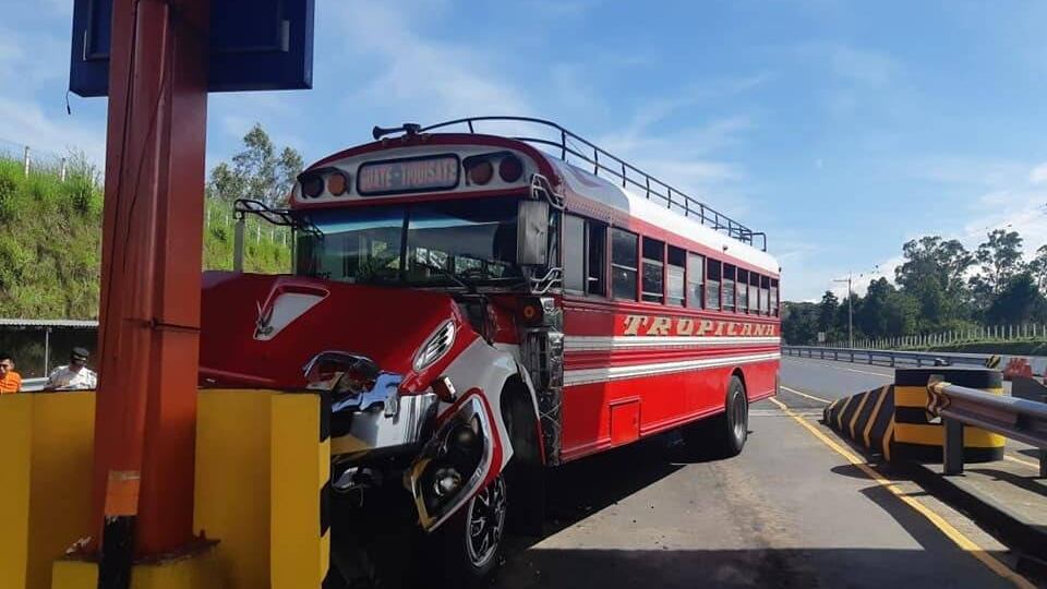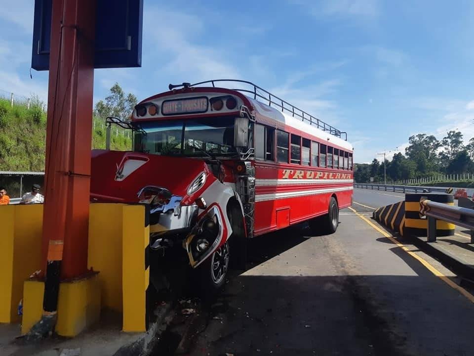 Por causas que se desconocen un bus de transporte extraurbano y un camión cisterna colisionaron contra la estructura de las garitas de peaje de la autopista Palín-Escuintla.