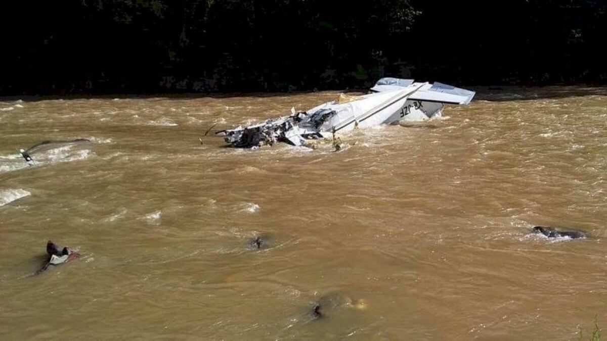Imágenes de la cadena local Televisa mostraban los restos destrozados de la avioneta justo en medio del cauce de un río mientras algunos curiosos observaban desde la ribera.