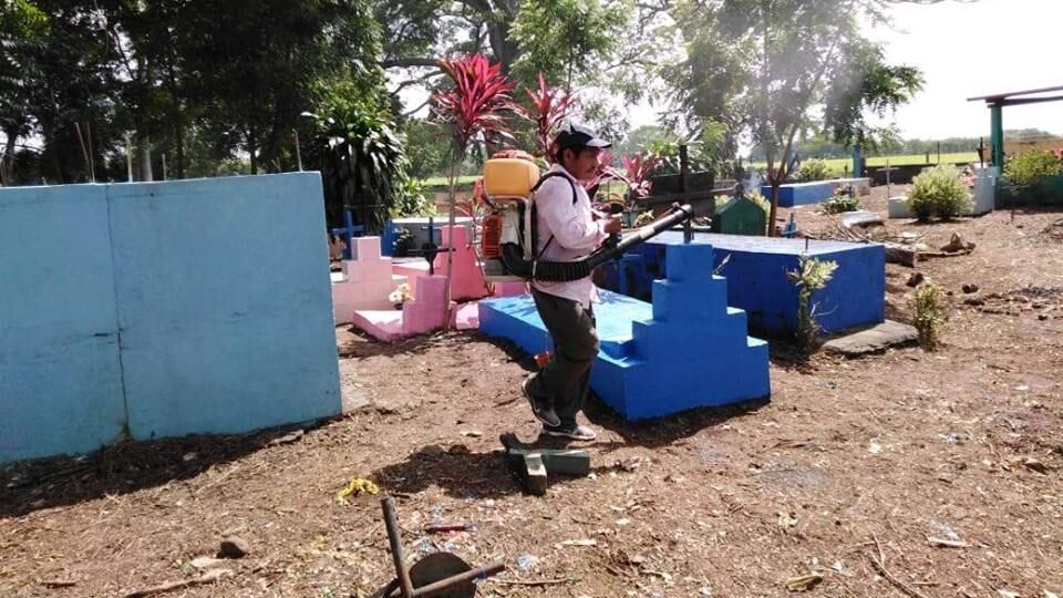 Una brigada del Programa de Enfermedades Transmitidas por Vectores tuvo a cargo la fumigación y abatización en el cementerio de la aldea La Guitarra.