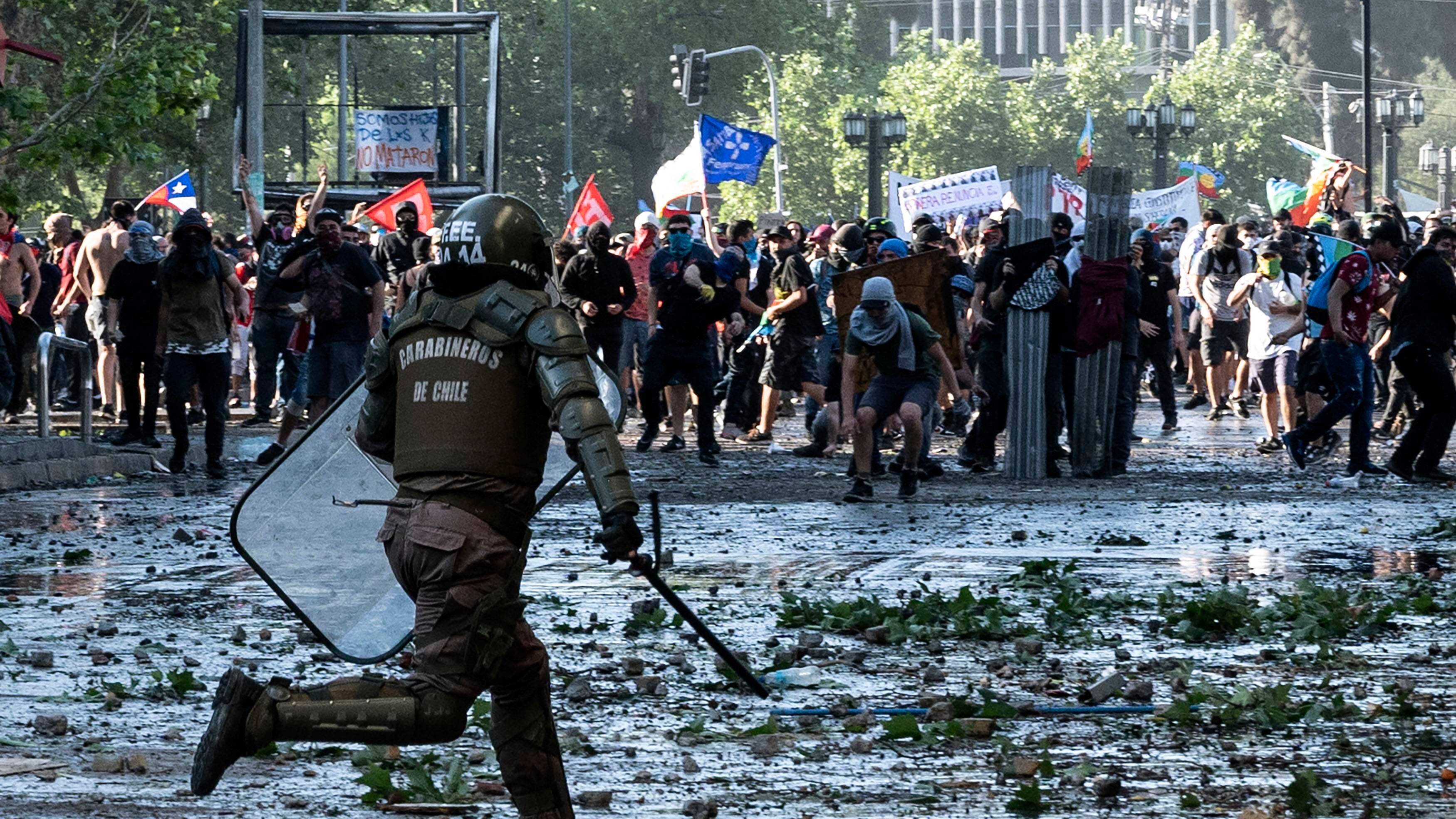 Los enfrentamientos entre manifestantes y las fuerzas de seguridad se mantuvieron el jueves en los puntos álgidos de las protestas, como la céntrica Plaza Italia de Santiago, que volverán a colmarse este viernes.