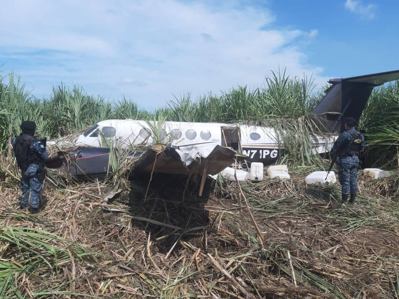 Posterior a ello, se notificó a la Policía Nacional Civil y al Ministerio Público, quienes llegaron a la escena donde se localizó la narcoavioneta.