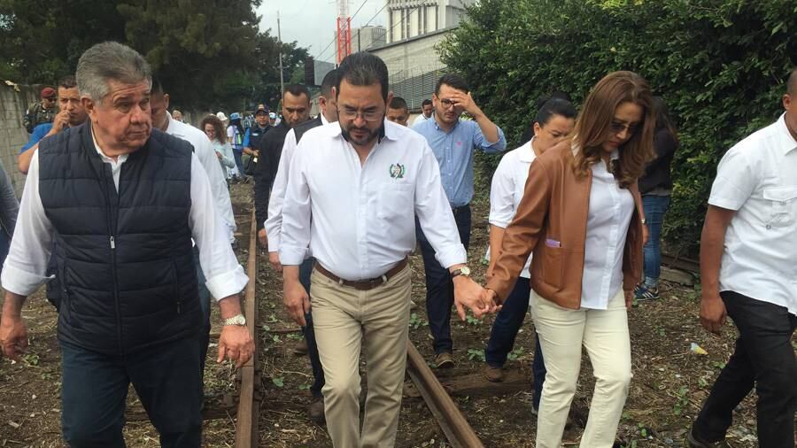 Acto seguido, y en un vagón enganchado a la locomotora, se subieron el mandatario, Jimmy Morales acompañado de su esposa, Patricia Marroquín de Morales, así como el alcalde capitalino, Ricardo Quiñónez.