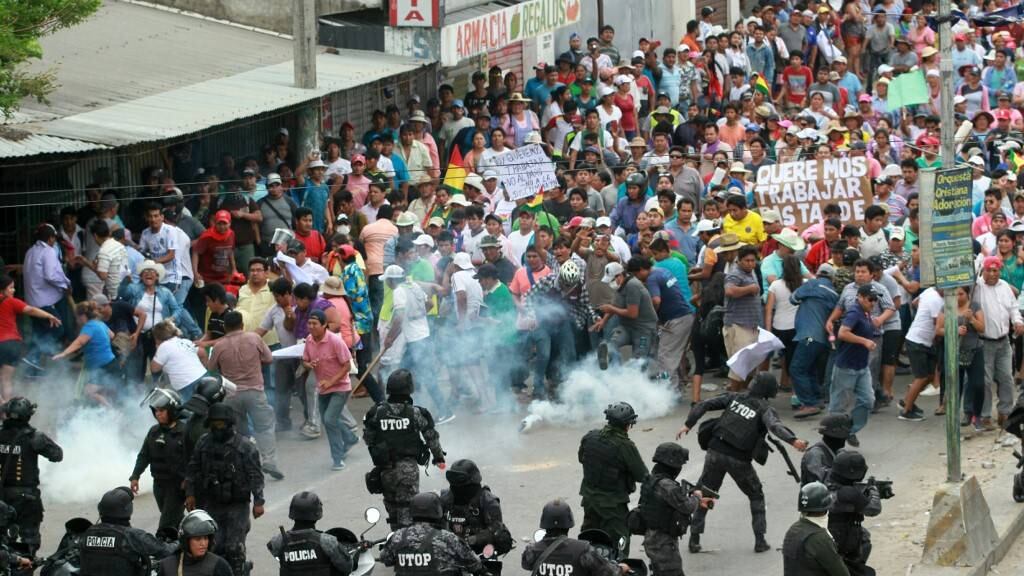 Choques en las calles con saldo de una treintena de heridos y bloqueos de rutas tuvieron lugar este lunes en Bolivia, al inicio de la segunda semana de protestas contra el cuestionado escrutinio electoral que dio al presidente Evo Morales un cuarto mandato al hilo.