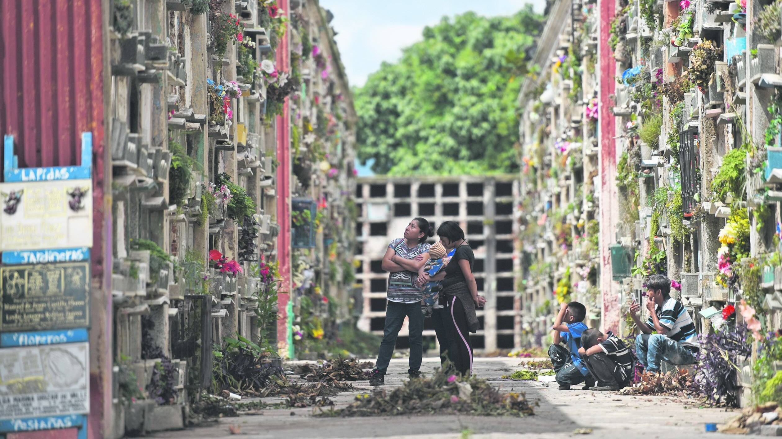 Él continuó el legado de su abuelo, quien trabajó por más de 50 años en el Cementerio General. Nelson junto con su hijo Josué rondan las calles del camposanto en búsqueda de trabajo.