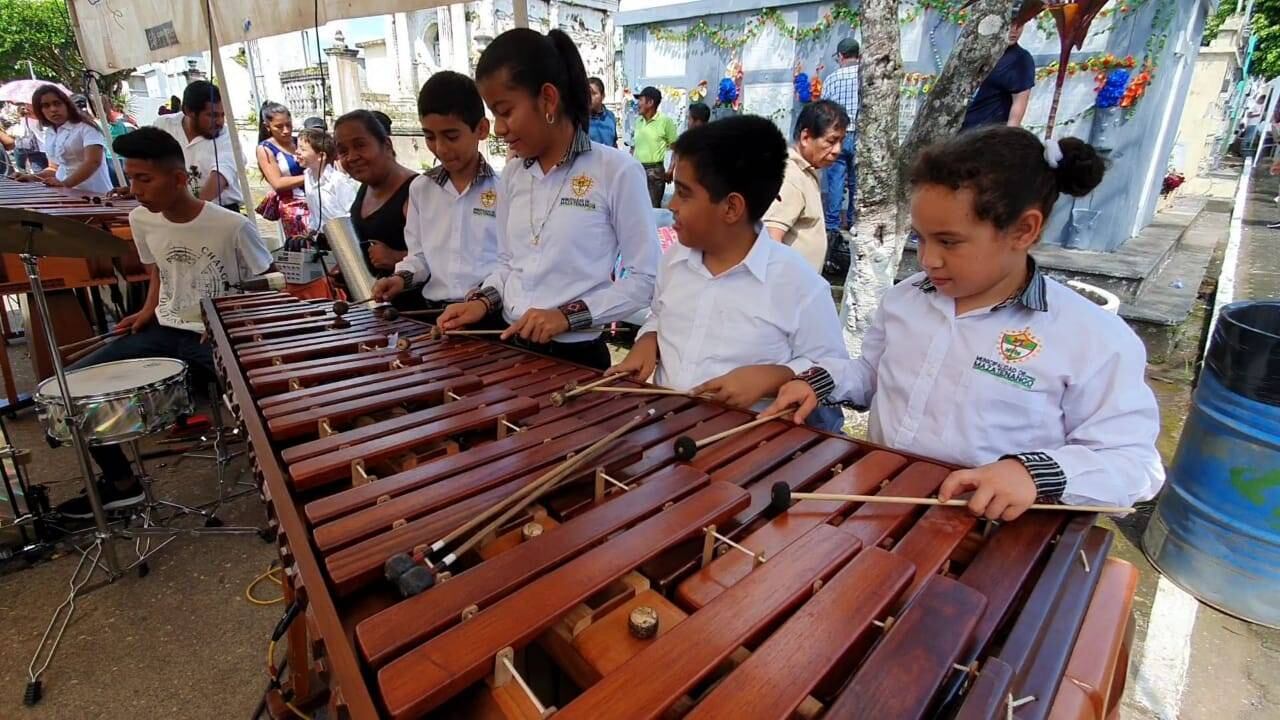 Sin embargo, las melodías ejecutadas en la marimba fueron las que se robaron la atención de los visitantes del cementerio general de Mazatenango.