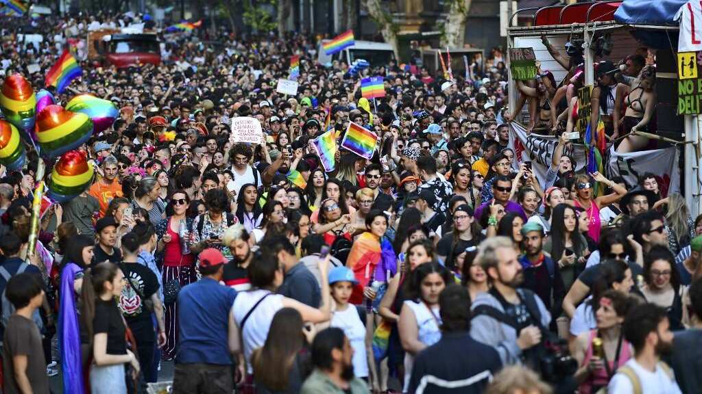 Millares de personas desfilaron el sábado por el centro de Buenos Aires "por un país sin violencia institucional ni religiosa y tampoco crímenes de odio", en la 28º Marcha por el Orgullo que por primera vez eliminó el tradicional emblema LGBT.