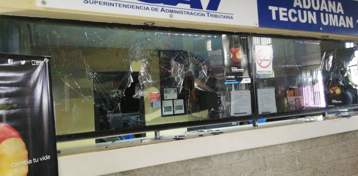 Werner Ovalle, intendente de Aduanas, informó que personal de la Superintendencia de Administración Tributaria (SAT) y elementos de la Policía Nacional Civil (PNC) se encuentran retenidos por los inconformes.