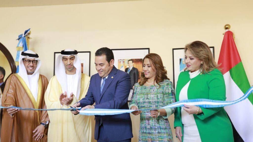 El presidente Jimmy Morales inauguró este lunes la embajada de Guatemala en Emiratos Árabes Unidos. En el acto estuvieron presentes autoridades de ambos países.