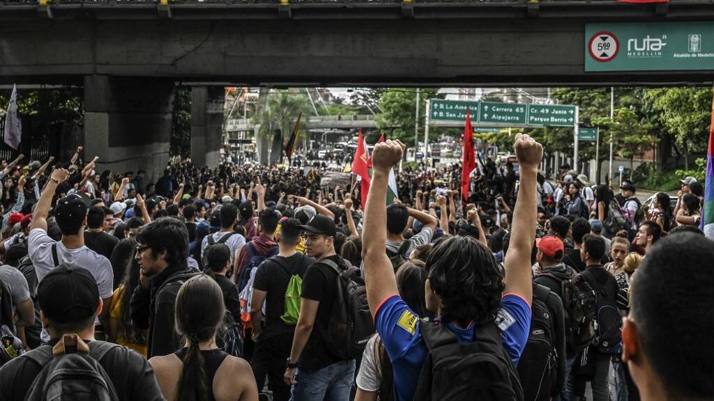 El movimiento obrero rechaza supuestas reformas gubernamentales para flexibilizar el mercado laboral y cambiar el sistema de pensiones, los indígenas exigen protección luego del asesinato de 134 comuneros desde que asumió Duque, y los estudiantes, más recursos para la educación pública.