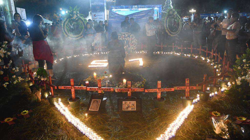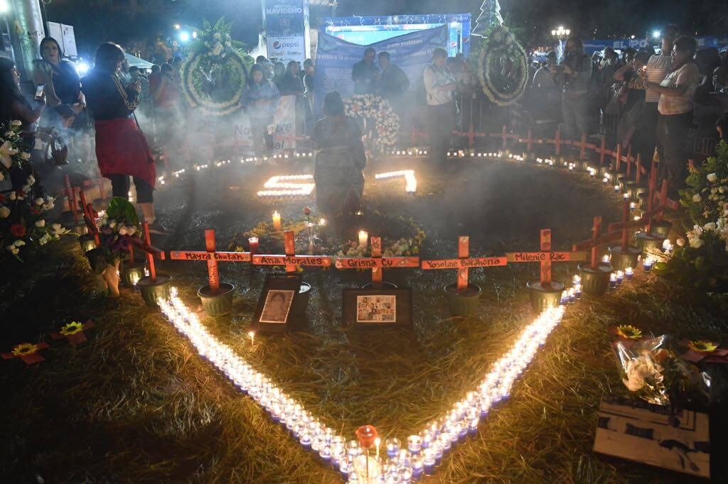 Con veladoras, candelas, pino y mucho respeto se elaboró un altar en el lugar en donde también se colocaron con anterioridad las cruces que recuerdan a las niñas fallecidas en el Hogar Seguro Virgen de la Asunción.