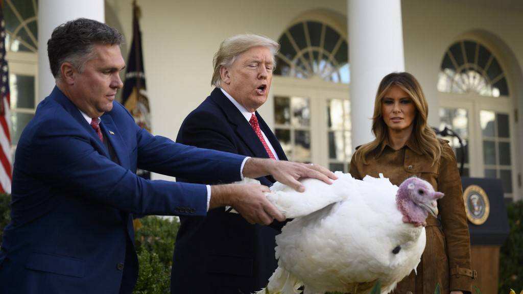 El presidente de Estados Unidos, Donald Trump, siguió este martes con la tradición instaurada en 1989 y encabezó su tercera ceremonia del "perdón del pavo", en la cual indultó a dos aves bautizadas como Bread y Butter (Pan y Mantequila), respectivamente.