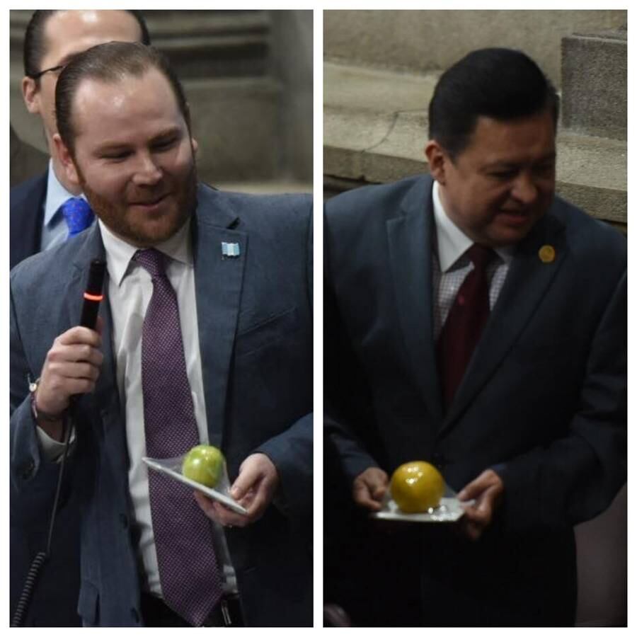 Al presidente del Congreso, Álvaro Arzú Escobar, le llevaron hasta su lugar el "limón" debido a que se negó a bajar y brindar palabras a los periodistas.