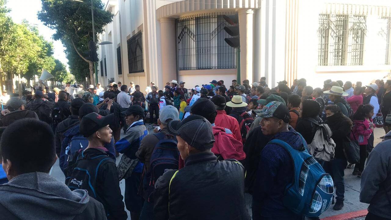 Decenas de pobladores del municipio de Cajolá, Quetzaltenango, realizan este lunes una manifestación en la zona 1 capitalina, frente a Casa Presidencial.