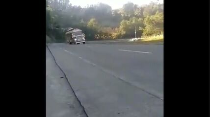 En las imágenes se observa cuando el vehículo se tambalea al tomar la curva. Usuarios en redes sociales comentaron que la unidad estuvo a punto de volcar, uno de los incidentes viales más recurrentes por el exceso de velocidad.