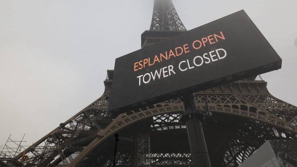 La Torre Eiffel mantendrá cerradas sus puertas este jueves, debido a una masiva huelga en Francia contra una reforma de las pensiones impulsada por el presidente Emmanuel Macron.