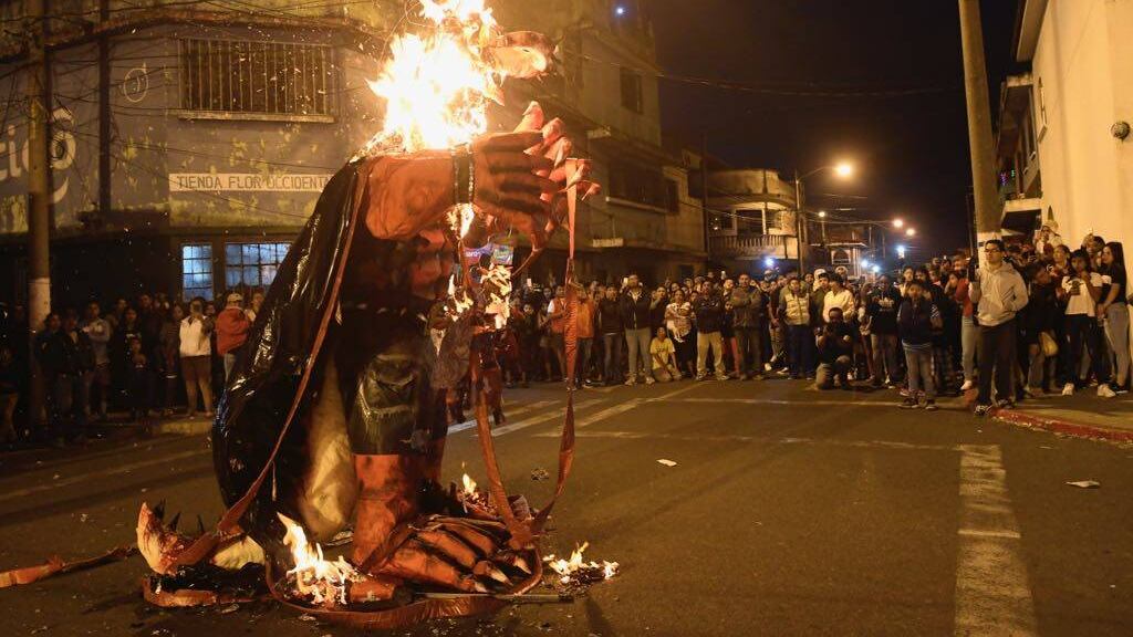 La quema del diablo es una tradición guatemalteca que se lleva a cabo cada 7 de diciembre, a las 18:00 horas. Como en otros años, varias colonias se organizaron para quemar un diablo de grandes proporciones.