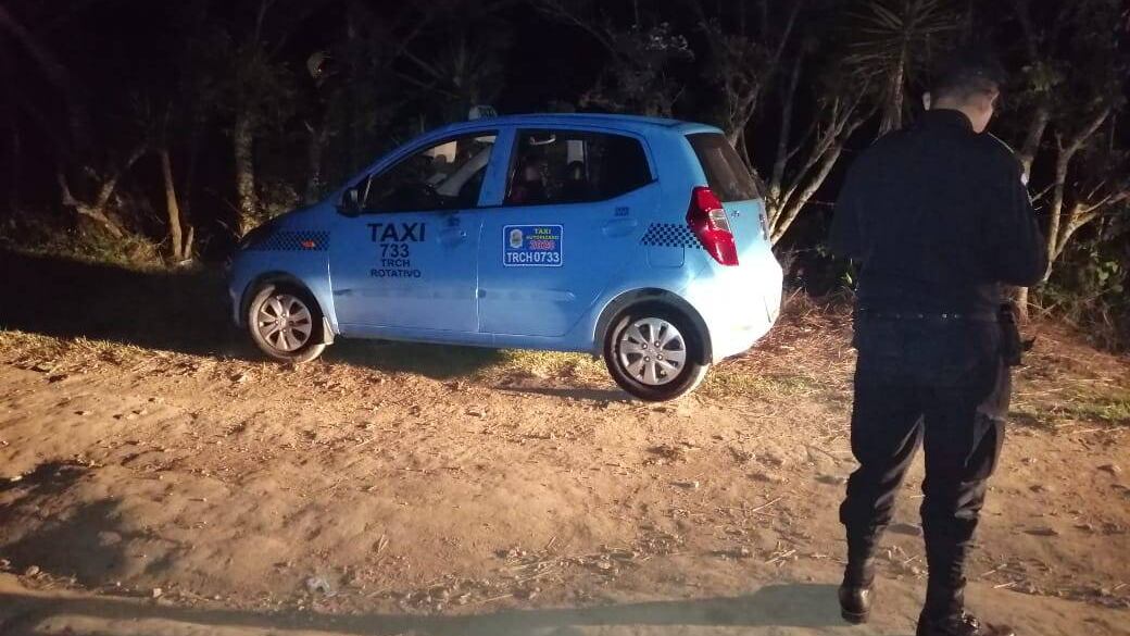 El taxi de color azul, identificado con placas P-647HGV, fue encontrado en un terreno baldío en Palencia.