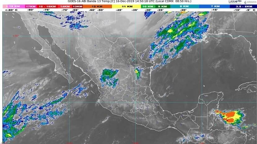 A partir de este miércoles 18 de diciembre, el territorio nacional podría verse afectado por lluvias debido al acercamiento de un nuevo frente frío, detalló el Insivumeh.
