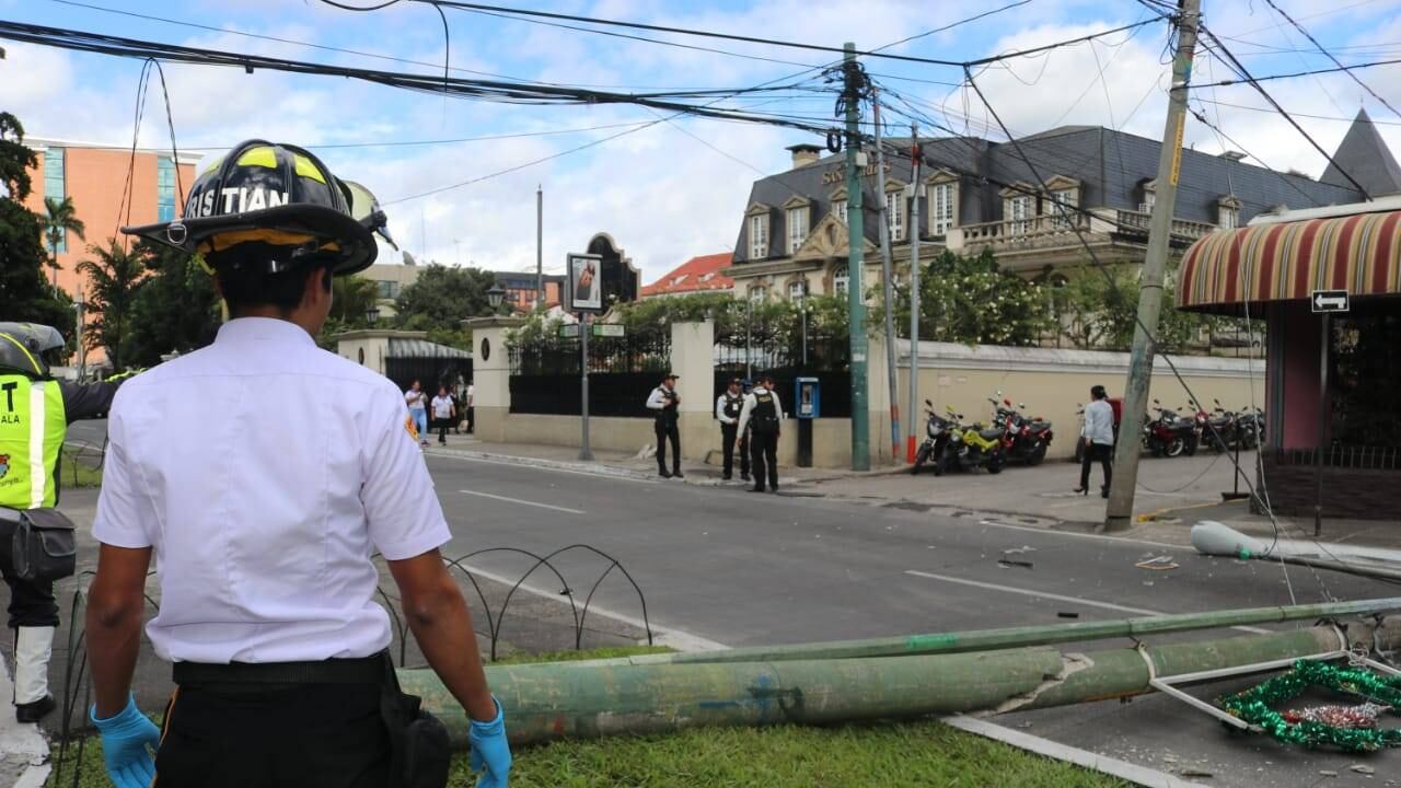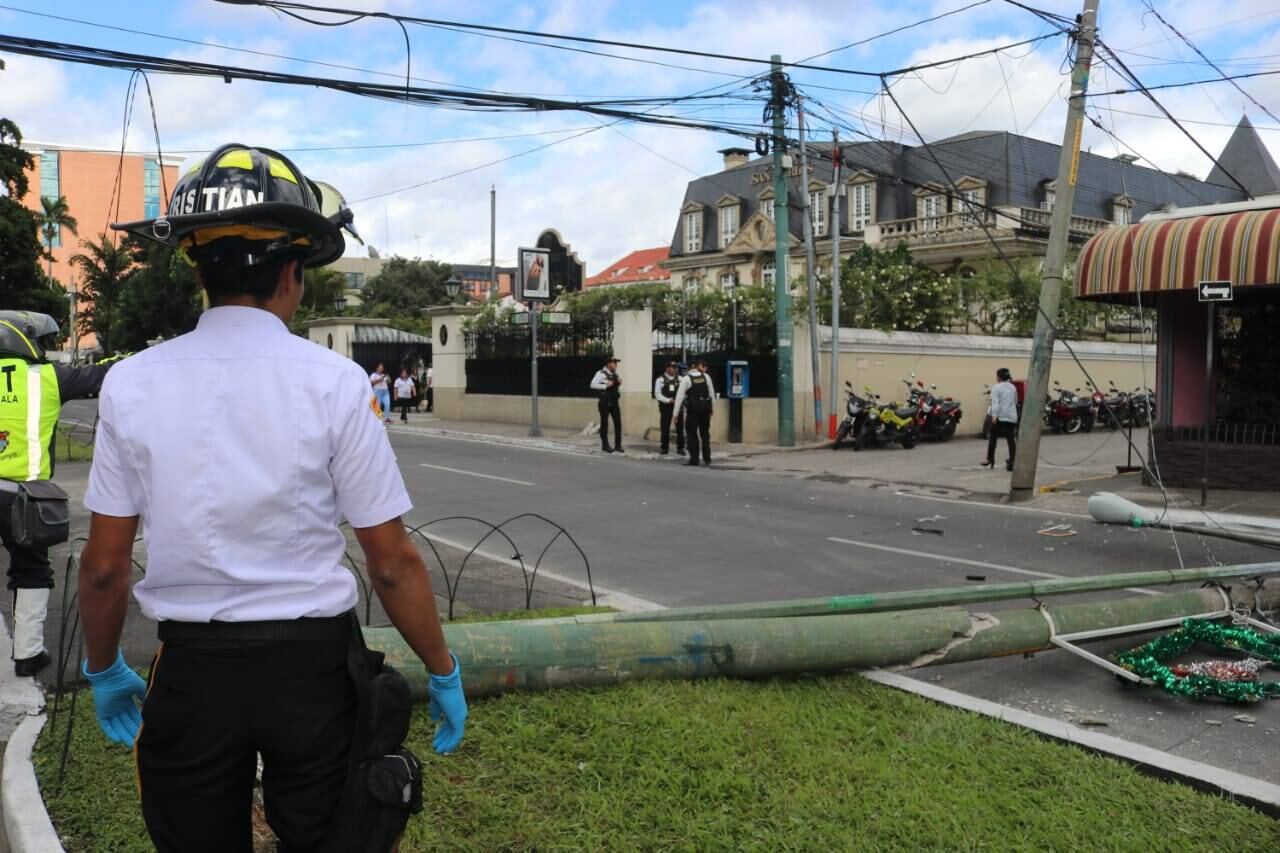 Un árbol se desplomó y derribó varios postes del alumbrado eléctrico este miércoles en la avenida Reforma y 8ª calle de la zona 10 capitalina.