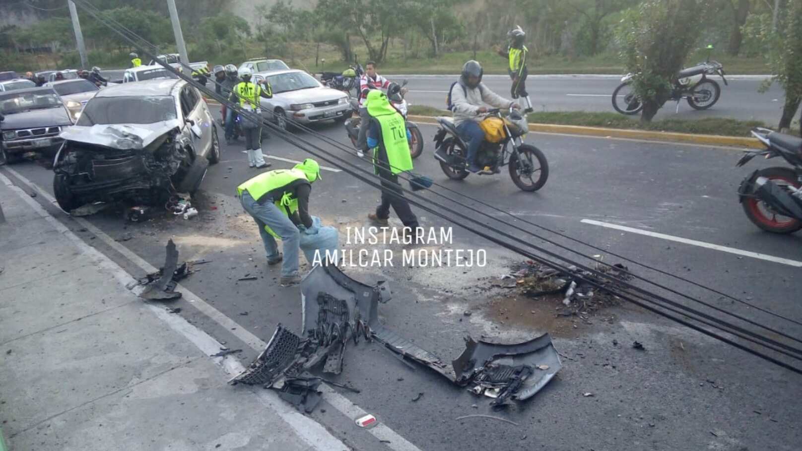 El vocero vial de la Municipalidad de Guatemala, Amilcar Montejo, informó que los vehículos colisionaron en el tramo sur, y que en el incidente tres postes de cableado de energía eléctrica fueron derribados y quedaron destruidos.