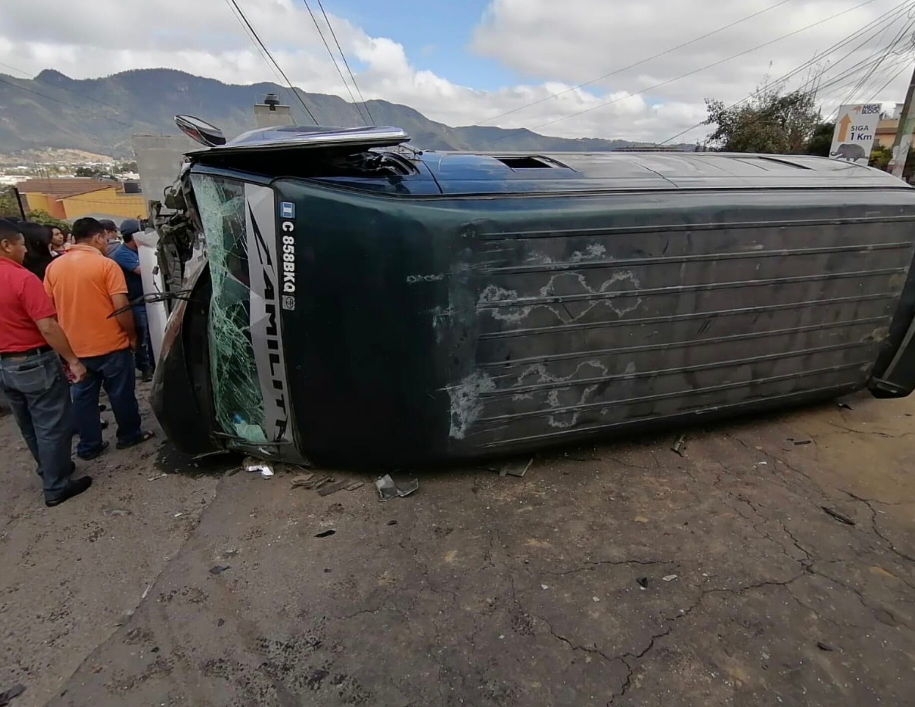 Bomberos Voluntarios señalaron que el percance ocurrió cuando un vehículo tipo picop y un microbús colisionaron cuando circulaban en el ingreso al referido municipio, ubicado en la región sur-occidente del país.