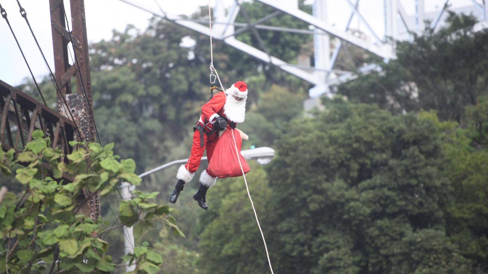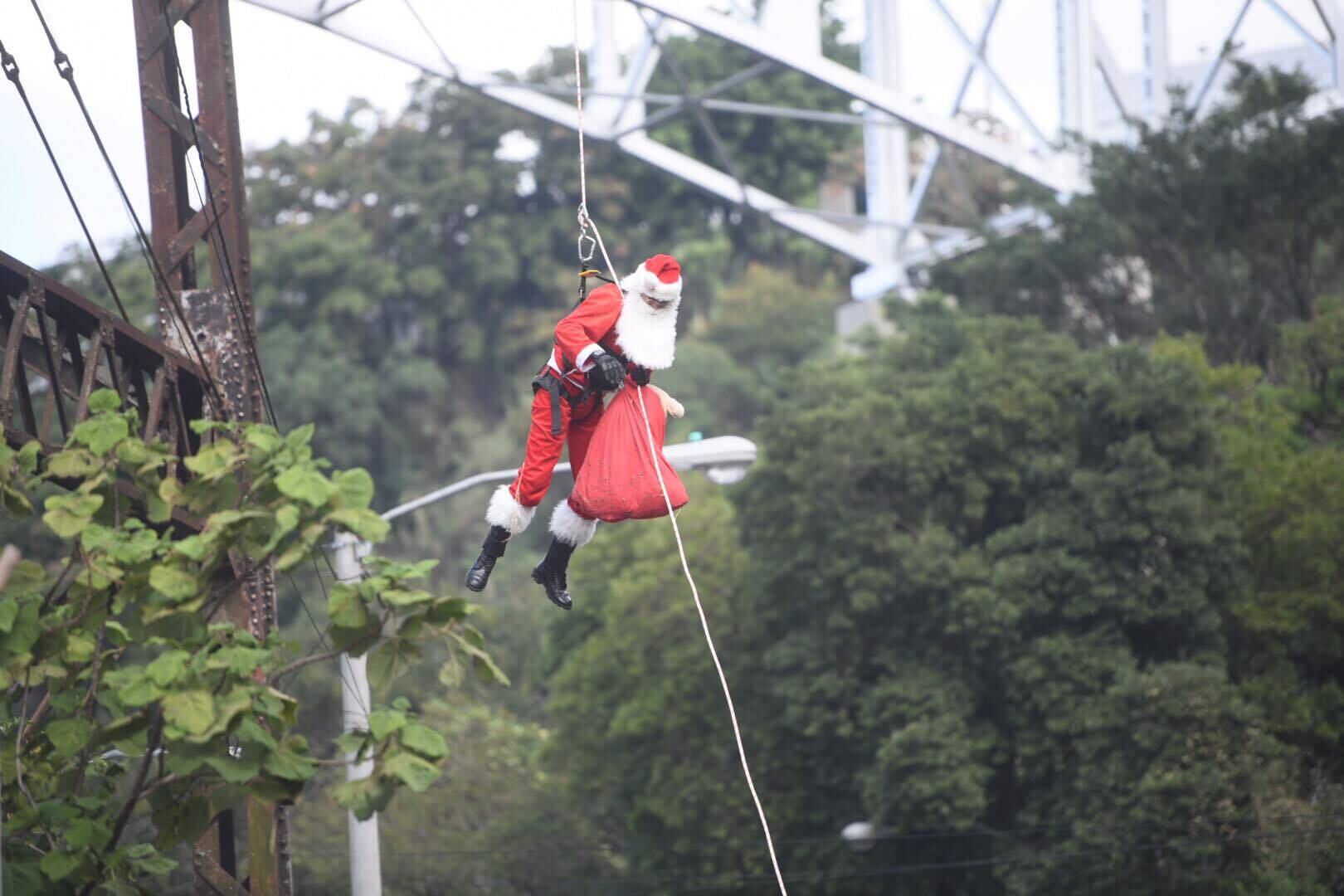 La tradicional bajada del Santa Claus del puente de Las Vacas, que hace el mayor delos Bomberos Municipales, llegó a dos días de la Navidad.
