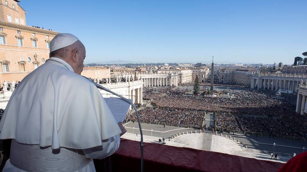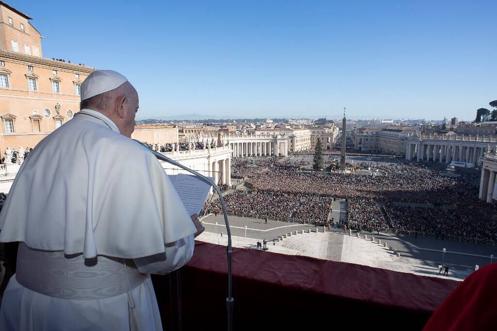 En su tradicional mensaje de Navidad en la plaza San Pedro del Vaticano, el séptimo desde que asumió el cargo, Francisco exhortó además a la comunidad internacional a "garantizar la seguridad en Oriente Medio, particularmente en Siria".