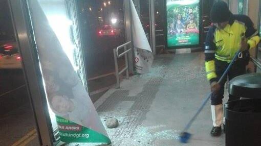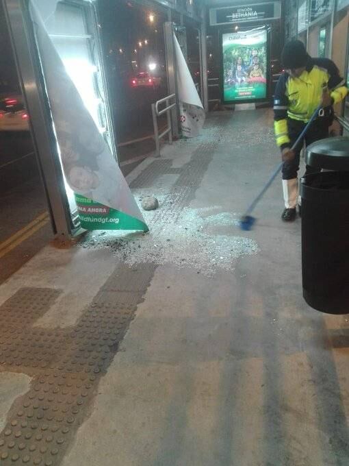 Desconocidos atacaron con piedras una estación del Transmetro ubicada en la colonia Bethania, zona 7 capitalina, y generaron daños en su estructura.
