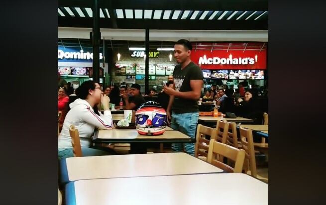 El joven se subió a una de las sillas en una food court (plaza de comidas) de un centro comercial, ubicado en la zona 17. Desde allí, llamó la atención de los comensales para anunciarles lo que iba a hacer.