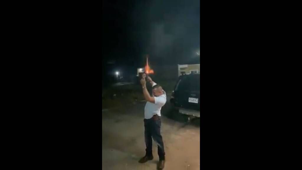 En este se observa a las personas que utilizan un arma de fuego para realizar varias detonaciones. También se escucha que a su alrededor hay personas que los alientan para cometer tal acción.