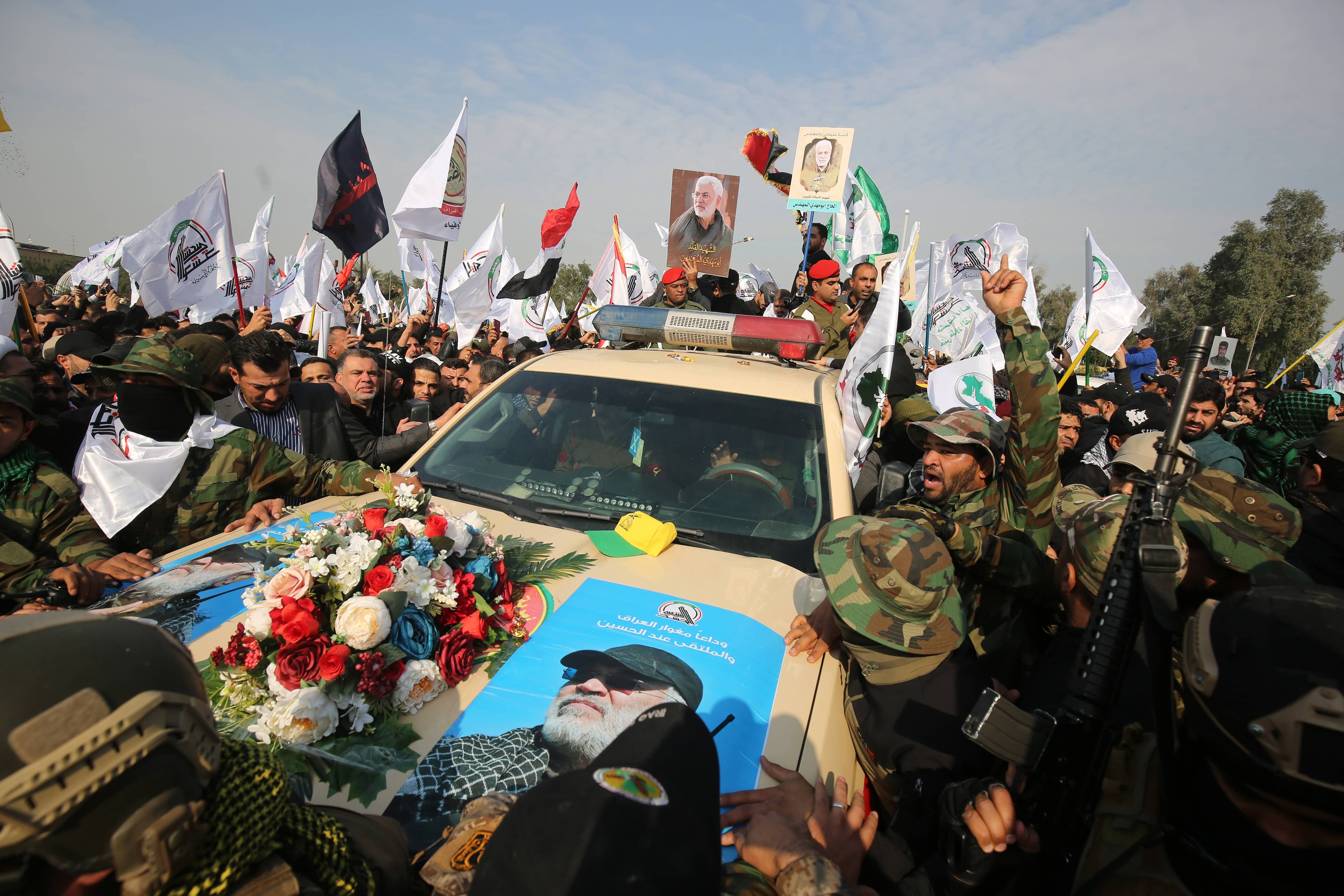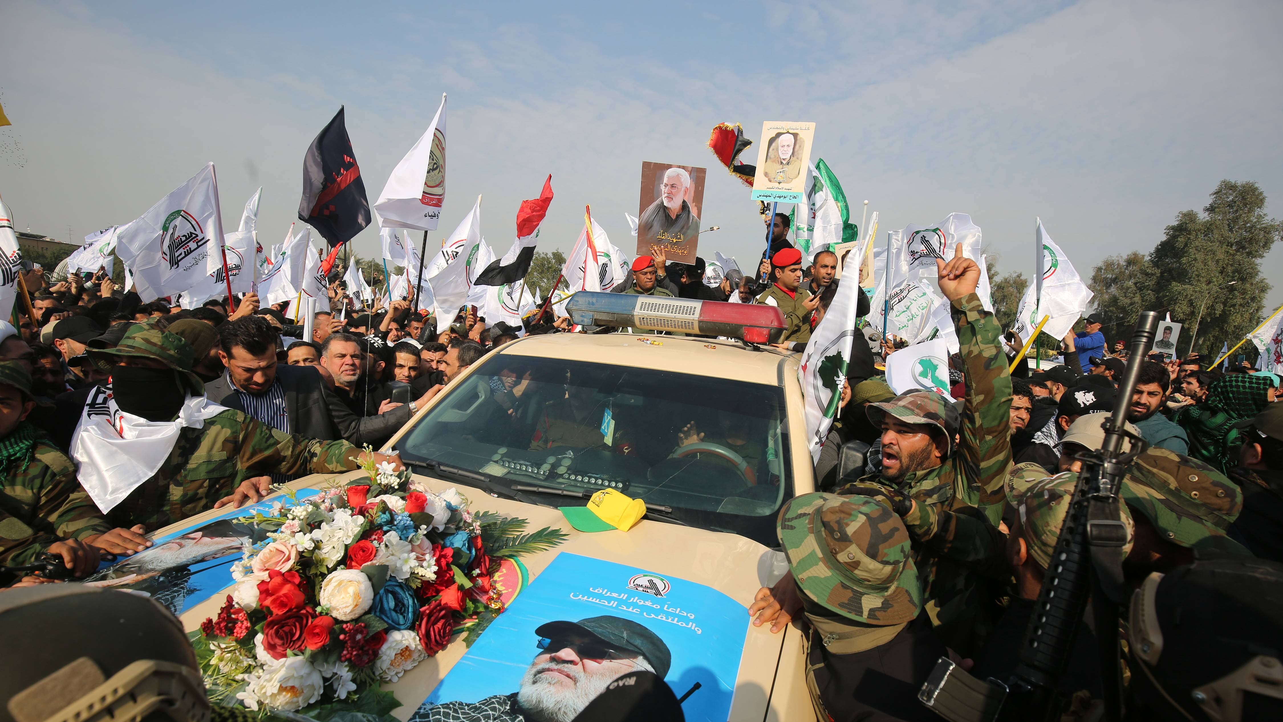Miles de iraquíes cantaron "Muerte a Estados Unidos" y se unieron a la procesión fúnebre del comandante militar iraní Qasem Soleimani y Muhandis, ambos muertos en un ataque aéreo estadounidense.