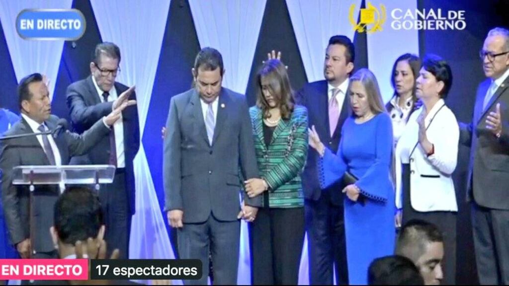 - "Dios, venimos a decirte: Gracias, porque hace cuatro años te pedimos a un presidente y hoy está por finalizar su mandato. Has defendido a nuestra nación… levantaste a tus hijos Jimmy Morales y a su esposa, Patricia Marroquín", dijeron los pastores en la oración.