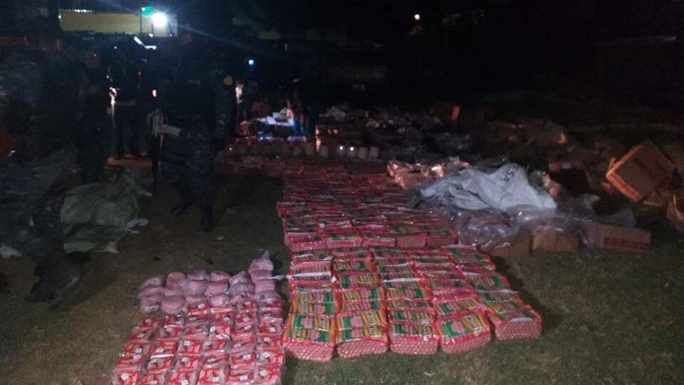 Según detalla la información de la Policía Nacional Civil (PNC), varias personas transportaban piel de cerdo y embutidos.