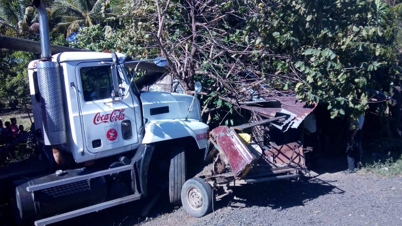 Por causas que se desconocen el piloto de un camión de bebidas perdió el control y chocó contra un pickup.