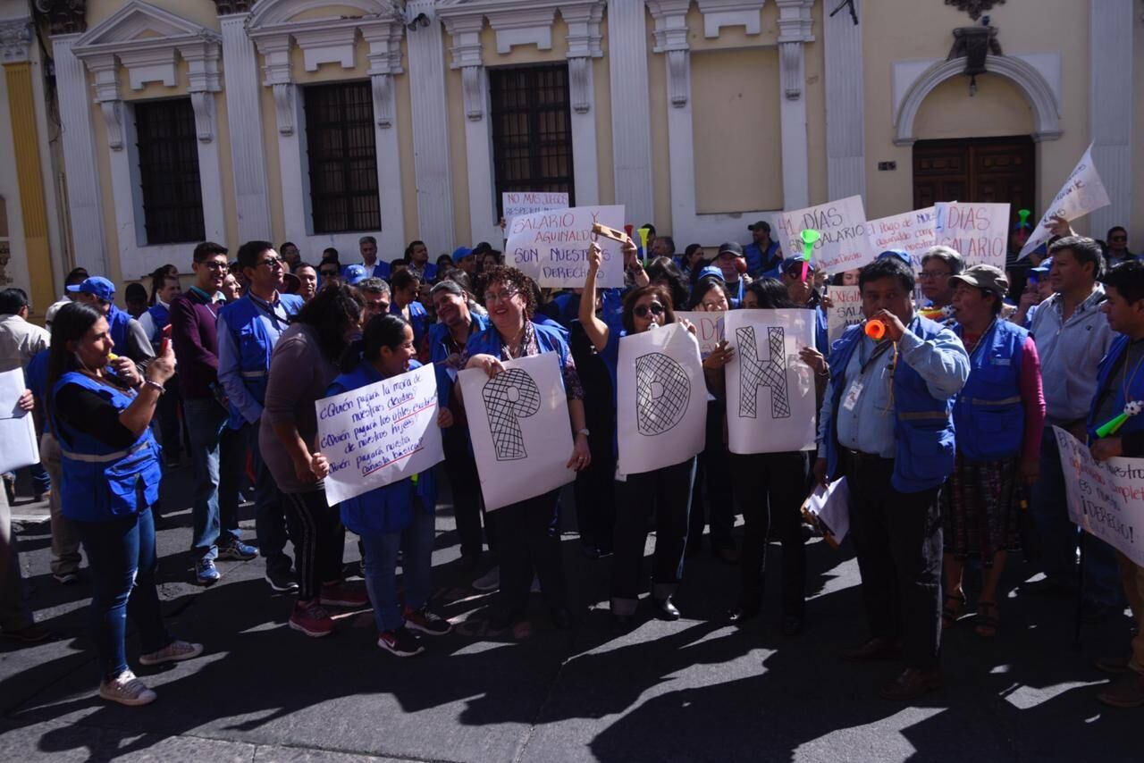 “Salario y aguinaldo son nuestros derechos, 41 días sin salario, ¿quién pagará nuestras deudas?, ¿quién pagará los útiles escolares de nuestros hijos?, ¿quién pagará nuestra canasta básica?”, se lee en algunos de los letreros.