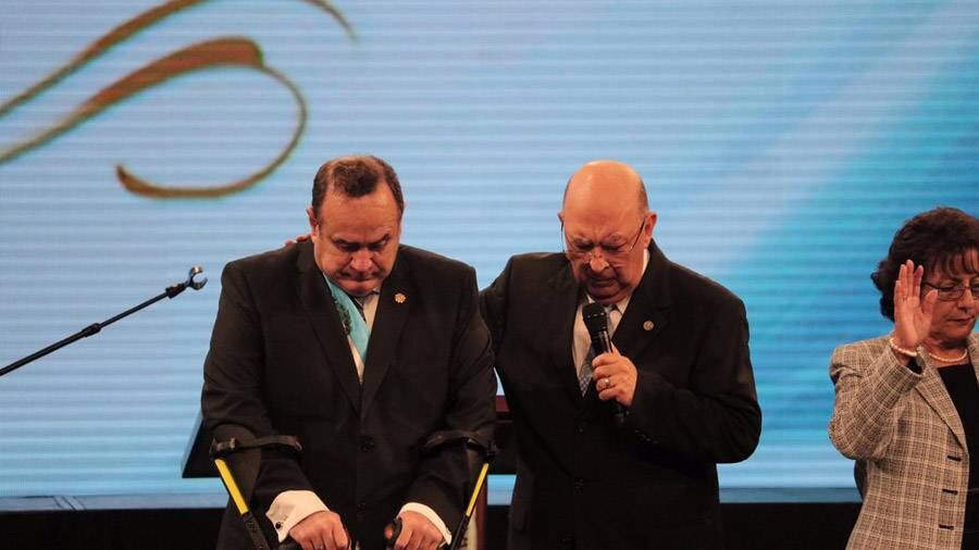 Por otra parte, Jorge H. López realizó la oración hacia los nuevos gobernantes imponiendo su mano sobre el presidente Giammattei.