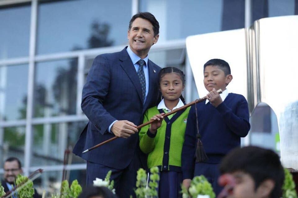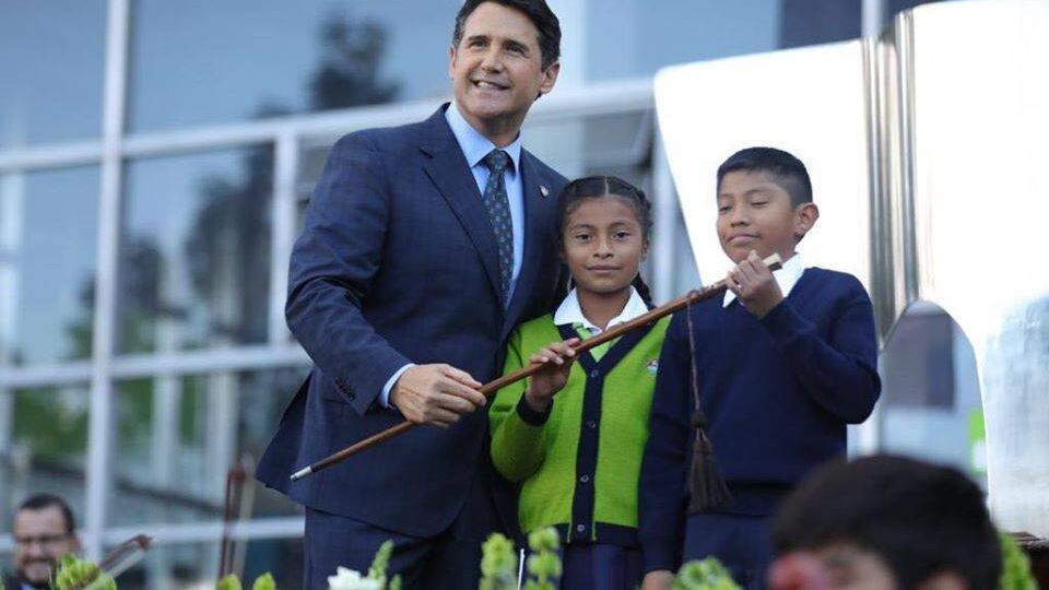 Quiñónez recibió la vara edilicia por parte de dos niños, Jennifer y Luis, representantes de las escuelas de la Municipalidad de Guatemala.