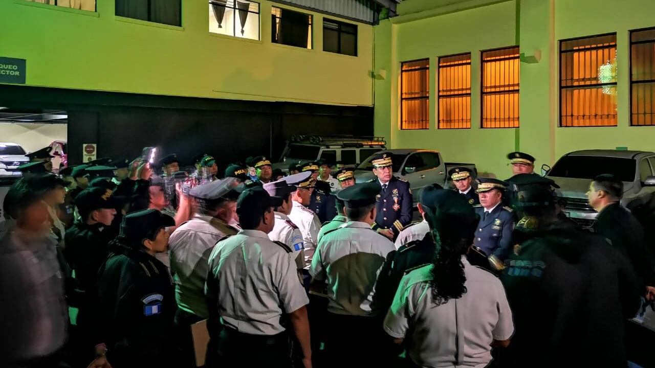El director General de la Policía Nacional Civil (PNC), Ervin Mayén Véliz, se presentó a la Dirección General de esa institución en donde brindó un discurso a los mandos medios y elementos policiales.