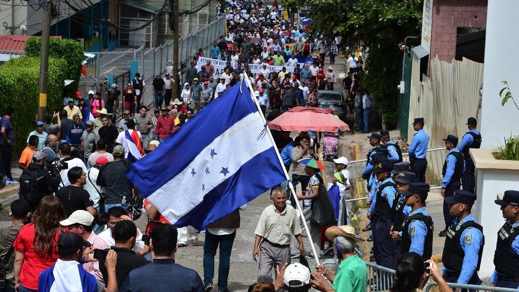 Cientos de hondureños marcharon este domingo en la capital, Tegucigalpa, para pedir la continuidad de la misión anticorrupción de la Organización de Estados Americanos (OEA), conocida como MACCIH y cerrada el viernes por el gobierno del presidente Juan Orlando Hernández, al caducar el convenio que le daba vida desde el 2016.