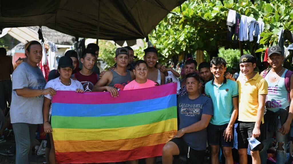 "Yo que soy de comunidad (gay) es muy difícil encontrar un empleo, un trabajo digno. No hay oportunidades para nosotros" en Honduras, señala, junto a cientos de migrantes que se resguardan del intenso calor en un albergue habilitado con grandes carpas en el poblado fronterizo.