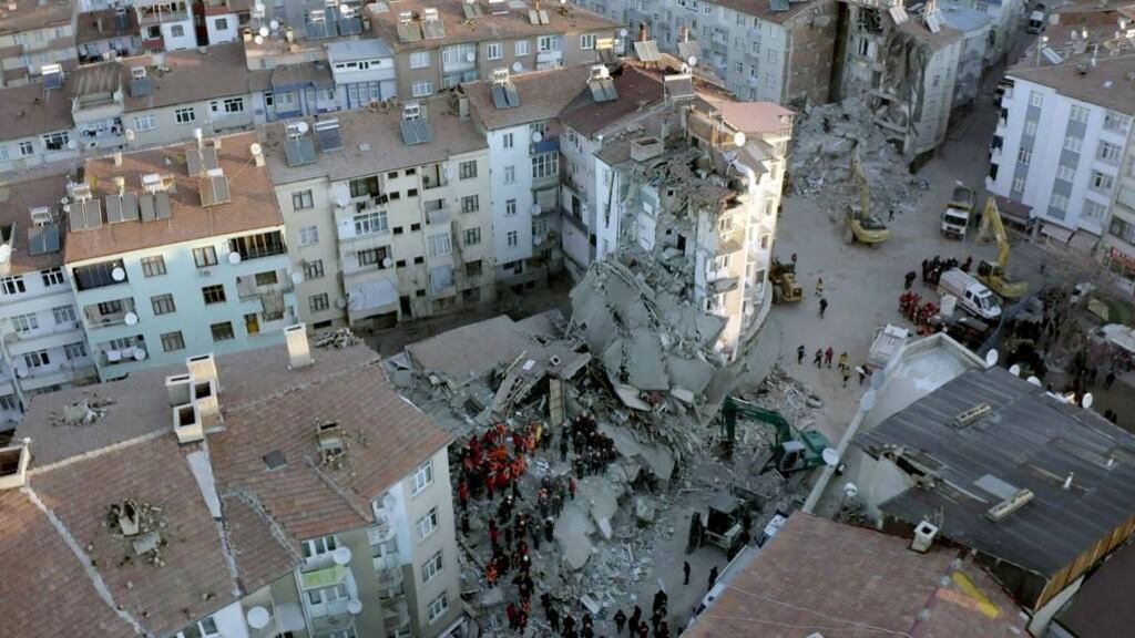 En Sürsürü, un barrio de la ciudad de Elazig, ubicada no muy lejos del epicentro del sismo, se hallaron tres cuerpos sin vida entre los escombros de un inmueble residencial que se desplomó.