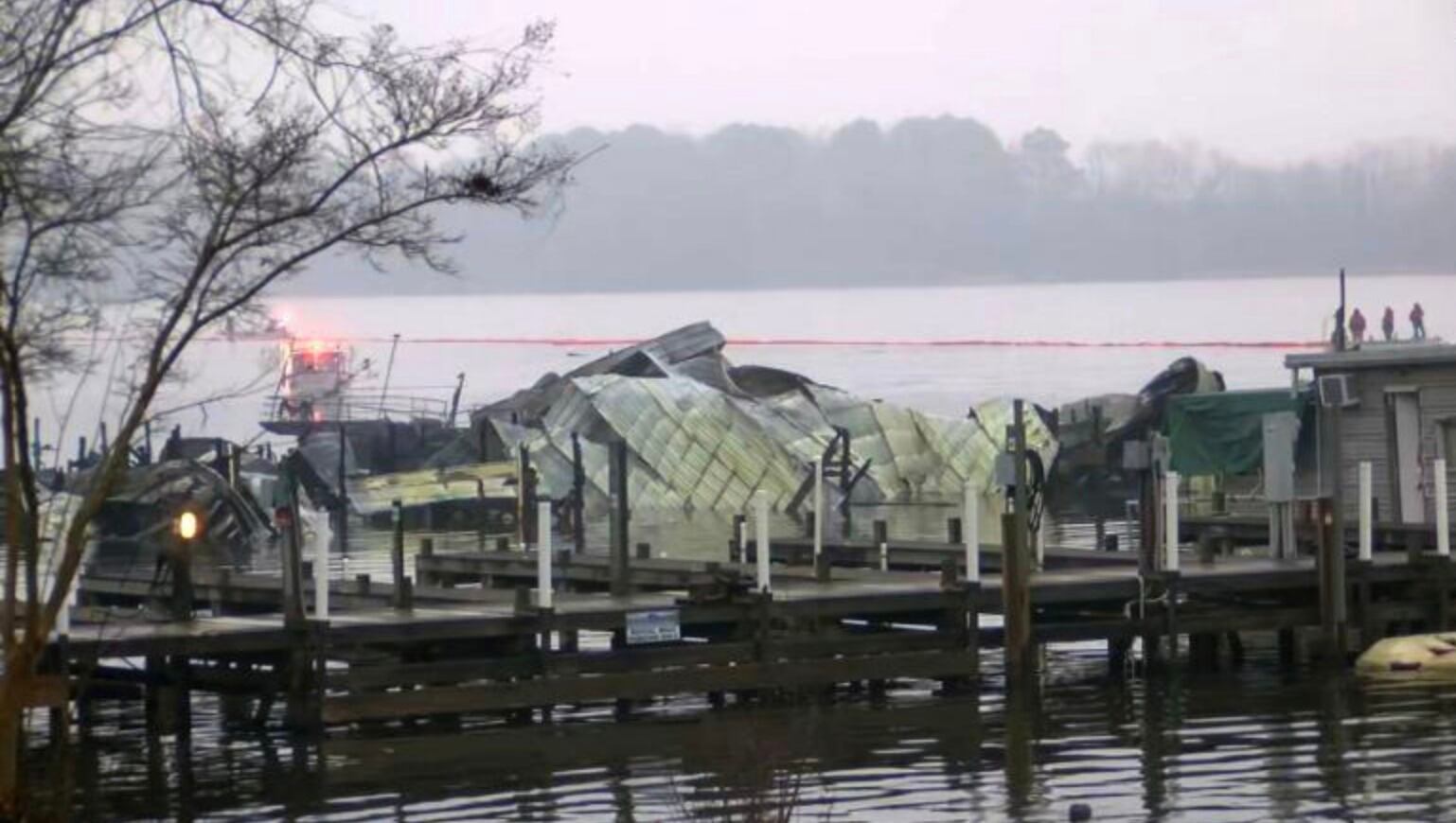 Necklaus dijo que al menos 35 botes quedaron completamente destruidos por el incendio. Muchos se hundieron en el muelle, otros se desamarraron y flotaron a la deriva hasta hundirse en el lago.